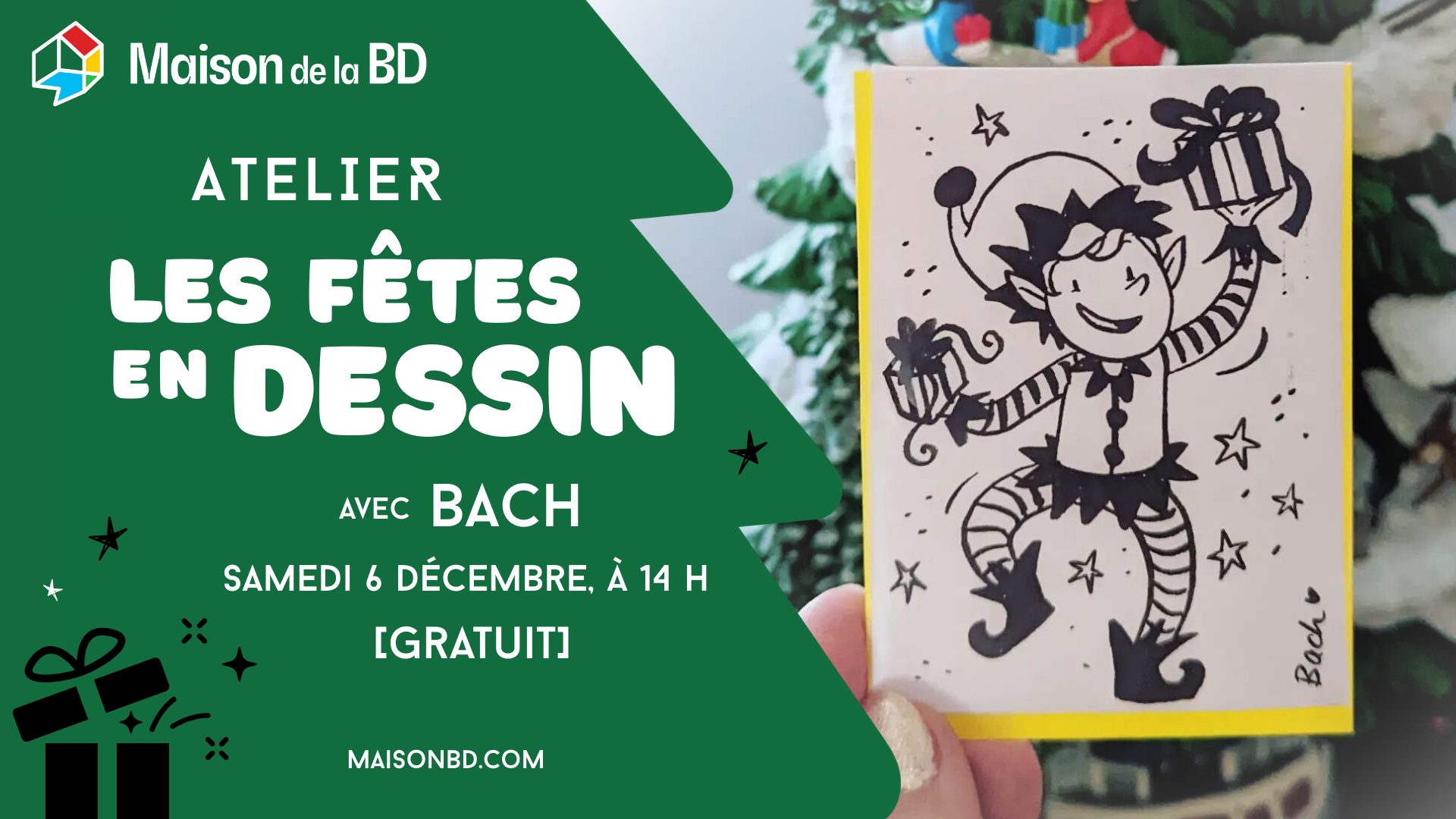 À l’approche des Fêtes, l’autrice et illustratrice Bach vous invite à venir dessiner avec elle de sympathiques personnages de bande dessinée et des illustrations sur le thème de Noël. Un atelier créatif pour toute la famille, où chacun pourra s’amuser à imaginer leur décoration dessinée ou un cadeau illustré original à mettre sous le sapin!