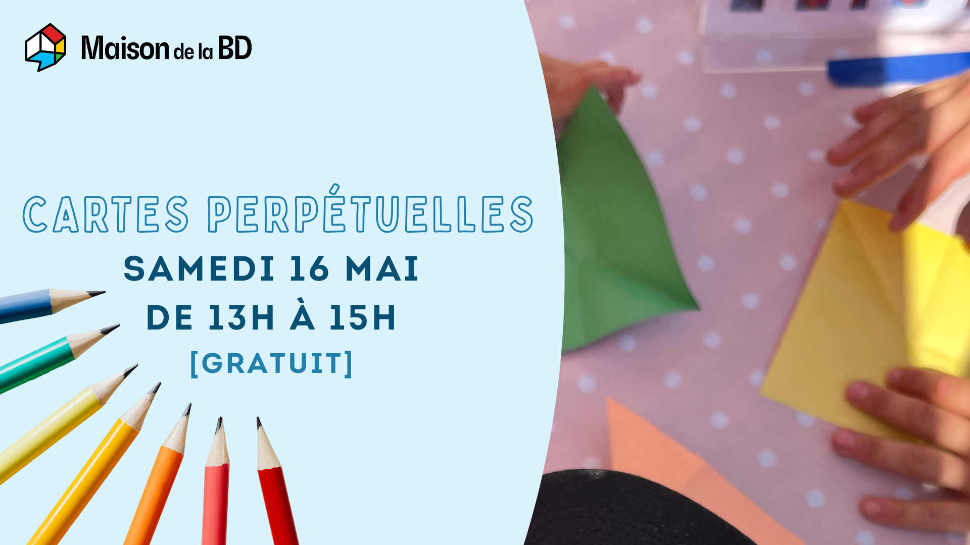 Envie de créer une œuvre unique ? Rejoins notre atelier de carte perpétuelle ! Apprends à plier et illustrer ta propre boucle infinie en mode bande dessinée. Tes personnages s’animent à chaque mouvement !