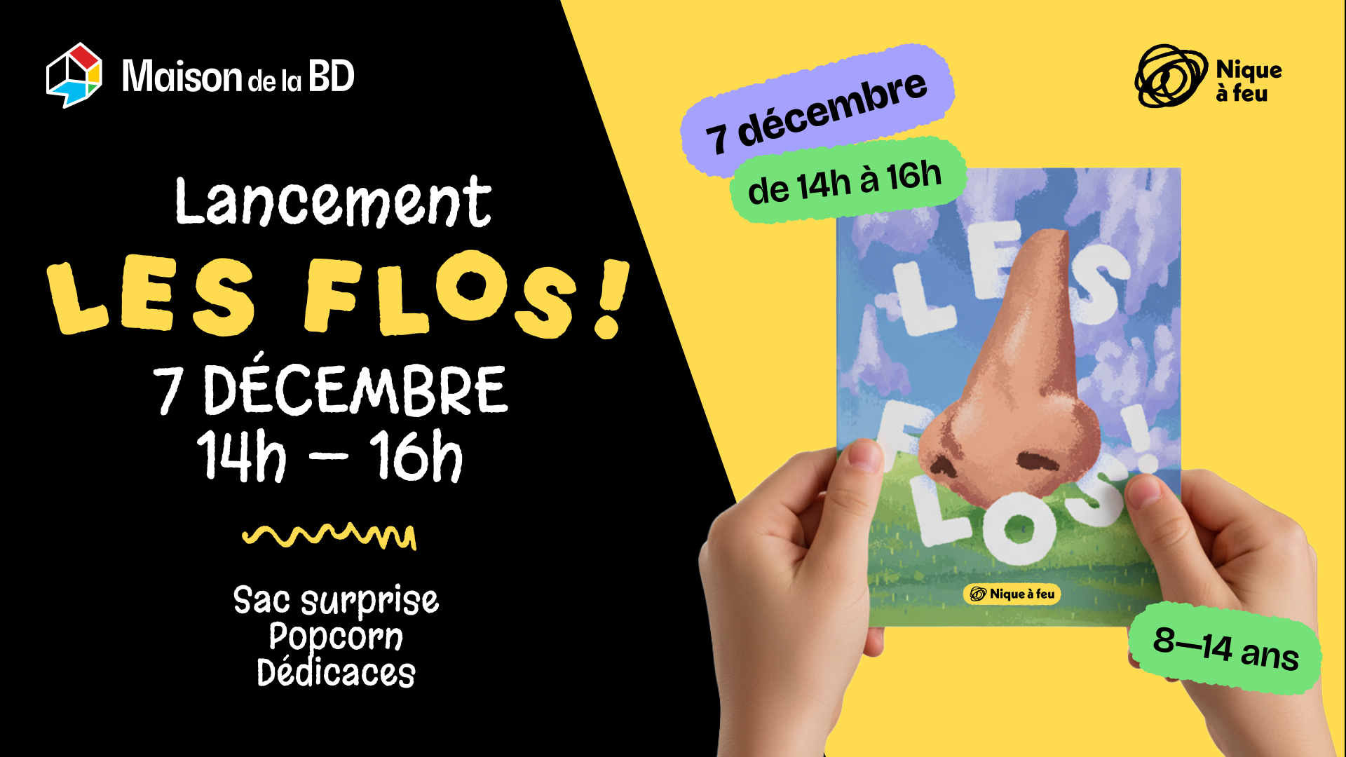 Viens célébrer à la Maison de la BD avec l’équipe de Nique à feu pour le lancement de leur tout premier numéro de la BD Les Flos! Ce livre-jeu fait éclater les cadres en proposant une lecture ludique et parfois impertinente tout en favorisant la découverte de la bande dessinée et de ses multiples possibilités.